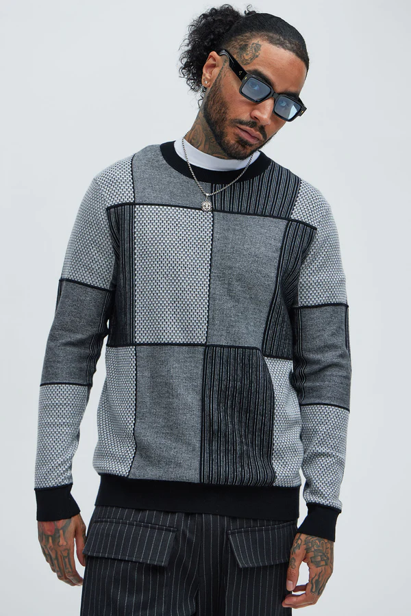A classic black combo crewneck sweater designed for warmth, comfort, and effortless everyday style.